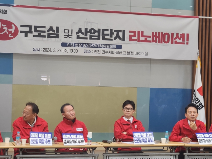 이날 회의에는 국힘 소속 인천지역 출마 후보자들이 한자리에 모여 총선 승리를 다짐하기도 했다.