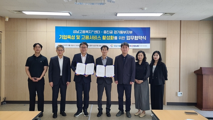 성남고용노동지청 성남고용센터와 중소벤처기업진흥공단 경기동부지부가 지역 중소기업의 경쟁력을 강화하고 고용 창출을 뒷받침하는 기업지원종합서비스를 제공하기 위해 손을 맞잡았다.