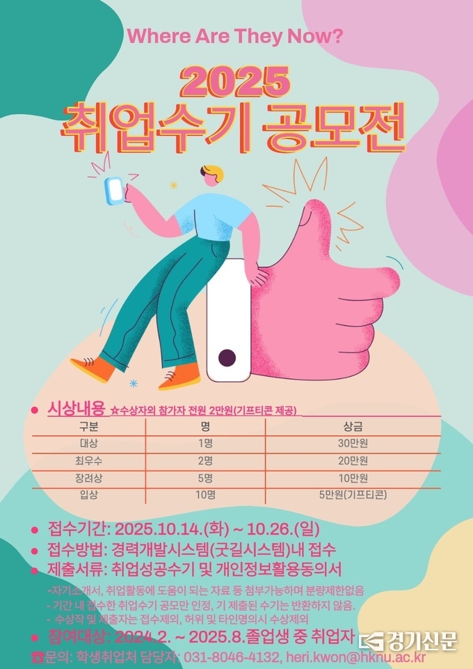 한경국립대학교 학생·취업처가 재학생과 지역 청년들의 진로 및 취업 탐색을 지원하기 위해 ‘나의 취업 성공 스토리’ 공모전을 개최한다.