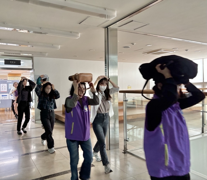 주요 훈련 내용은 ▲지진 발생 시 국민행동요령 교육 ▲실내 대피 ▲실외 대피 순으로 구성되어 실제 상황과 유사한 환경에서 훈련이 이뤄졌다.