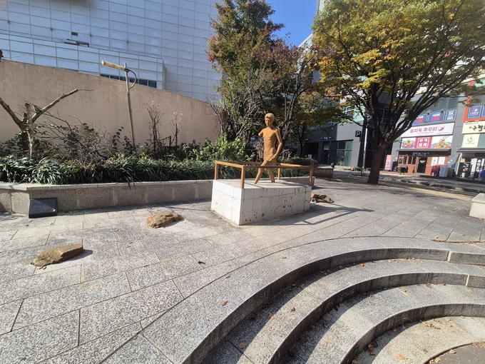 구 관계자는 “해당 조각상은 사유지에서 세워진 것으로 관리업체 권한”이라며 “지자체가 나서 동상을 철거하거나 보수하기는 어렵다”고 설명했다.