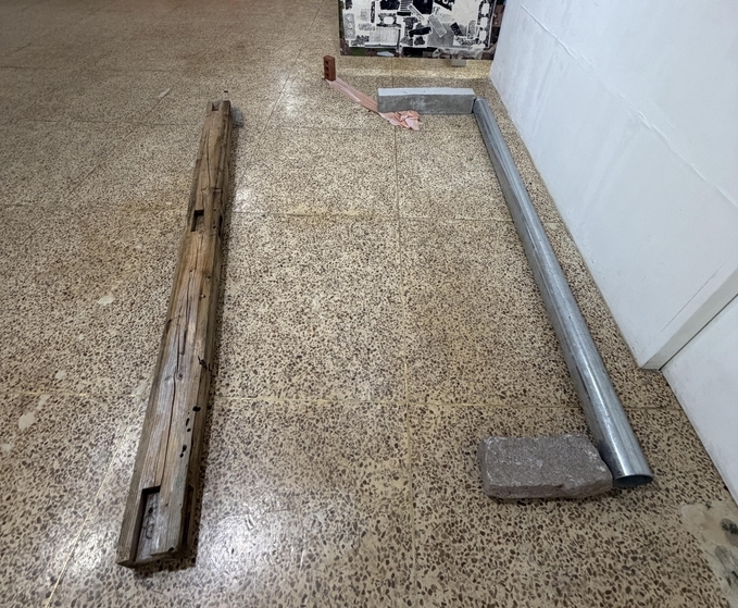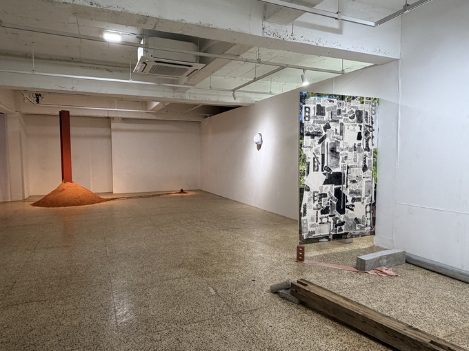 이어 전시장 한편을 가득 채운 ‘흔들리는 나뭇잎에서 바람의 얼굴을 보다’는 H빔과 흙더미가 마치 땅따먹기처럼 놓여져 있다.