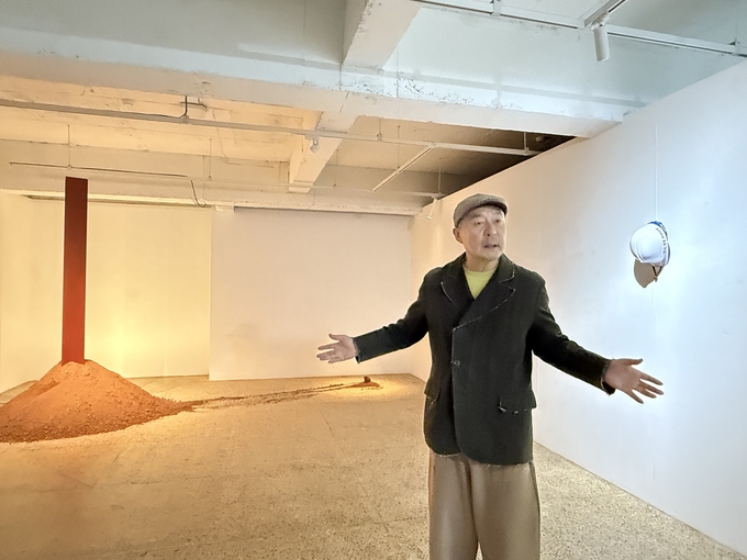 박 작가는 “H빔은 현대, 산업, 아파트, 욕망이 많은 나라 같은 느낌이다”라고 설명하며, 작품 한쪽에 놓인 작은 흙더미를 “진 패자의 얼굴 같은 모습이다”라고 말했다.