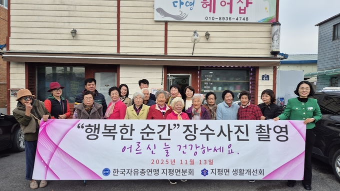양평군 지평면은 지난 13일 한국자유총연맹 지평분회와 지평면 생활개선회의 합동 나눔 행사로 '행복한 순간'장수사진 촬영 봉사활동을 진행했다고 밝혔다.