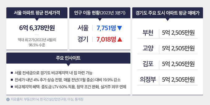치솟는 서울 전세가에 ‘내 집 마련’의 꿈을 접었던 세입자들이 경기도로 눈을 돌리고 있다. 서울 아파트 전세 보증금으로 인접한 경기도 비규제지역의 아파트를 매수할 수 있는 이른바 ‘탈서울’ 흐름이 확산되면서, 실수요자 중심의 이동이 빠르게 늘고 있다.