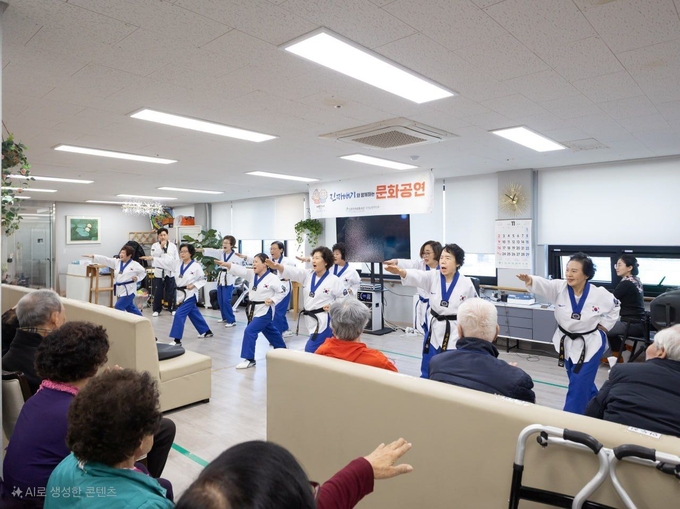 이어 실버태권도팀의 태권체조와 격파 시연, 난타 공연이 연달아 무대에 오르자 박수와 환호가 이어지며 요양원은 금세 축제 분위기로 물들었다.