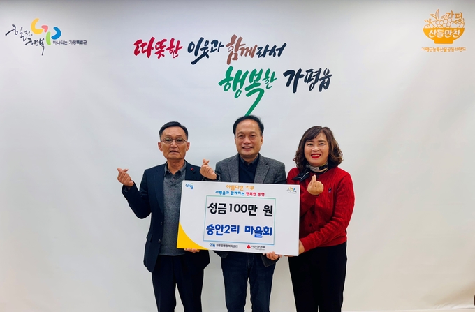 장석조 가평읍장은 "도움의 손길을 귀한 기부로 돌려주신 승안2리 마을회에 진심으로 감사드린다"며 '가평읍 행정복지센터도 그 뜻을 지켜 지역을 위해 더욱 노력하겠다'고 밝혔다.