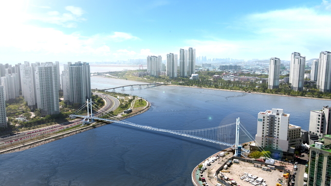 서해안 대표 명소인 시흥 월곶포구의 해상 경관을 배경으로 배곧동과 월곶동을 연결하는 현수교 형태의 횡단보도교가 건립된다.
