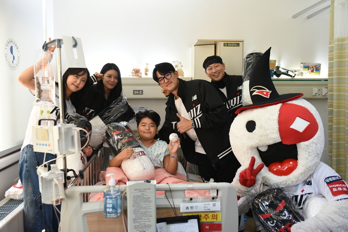 프로야구 KT 위즈 고영표 선수와 구단 응원단은 지난 2일 아주대병원 본관 6층 소아병동에 입원 중인 환아들을 찾았다.