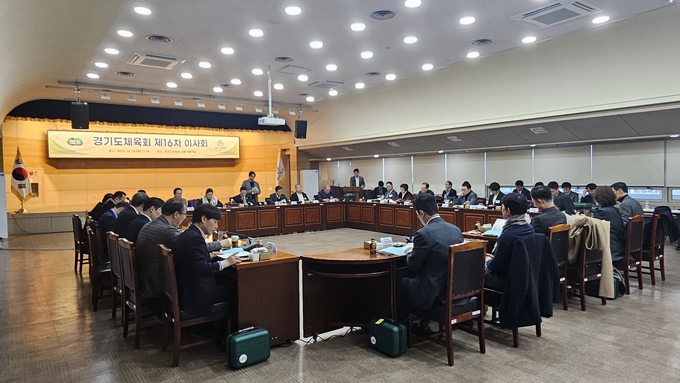 도체육회는 16일 경기도체육회관 10층 대회의실에서 이원성 회장을 비롯해 재적이사 43명 중 26명이 참석한 가운데 제16차 이사회를 진행했다.
