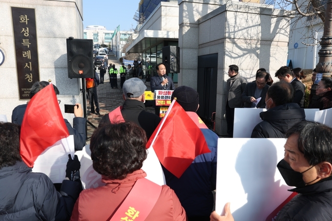 이권재 오산시장은 지난 17일 오후 12시, 화성시청에서 열린 집회에서 화성시의 초대형 물류센터 건립 계획을 규탄하고, 사업 전면 철회를 강력히 촉구했다.