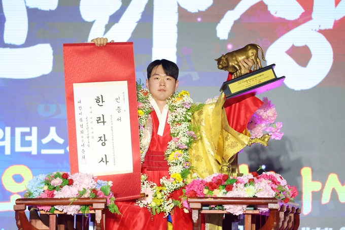 박민교(용인시청)가 위더스제약 2025 민속씨름 문경오미자장사씨름대회에서 통산 9번째 한라장사 타이틀을 거머쥐었다.