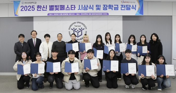 대학혁신지원사업의 일환으로 열린 이날 행사에서는 지난달 4일 열린 ‘2025 한신 별빛페스타’에서 우수한 활동을 펼친 기획단 학생 4명과 수업 연계 셀러 학생 15명에게 상장과 장학금이 수여됐다.