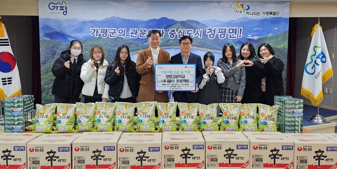가평군 청평고등학교 교직원과 학생들이 지난 연말 청평면 행정복지센터를 방문해 200만 원 상당의 쌀(4kg들이) 30개, 라면 30박스, 치약 30세트를 기탁했다고 4일 밝혔다.