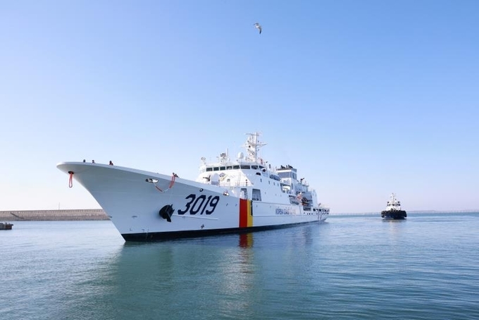 3019함은 길이 122.3m, 폭 15m 규모로, 최대 시속 45㎞(24노트)로 운항할 수 있는 대형 경비함정이다.