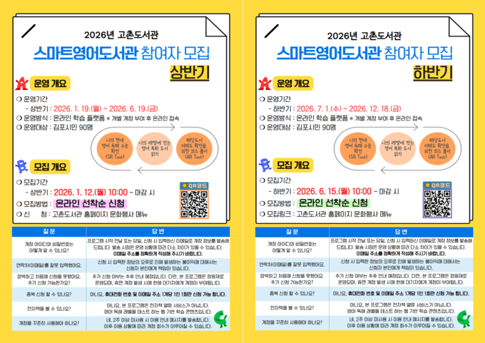 김포시 고촌도서관이 오는 19일부터 ‘2026년 스마트영어도서관’을 운영한다고 5일 밝혔다.