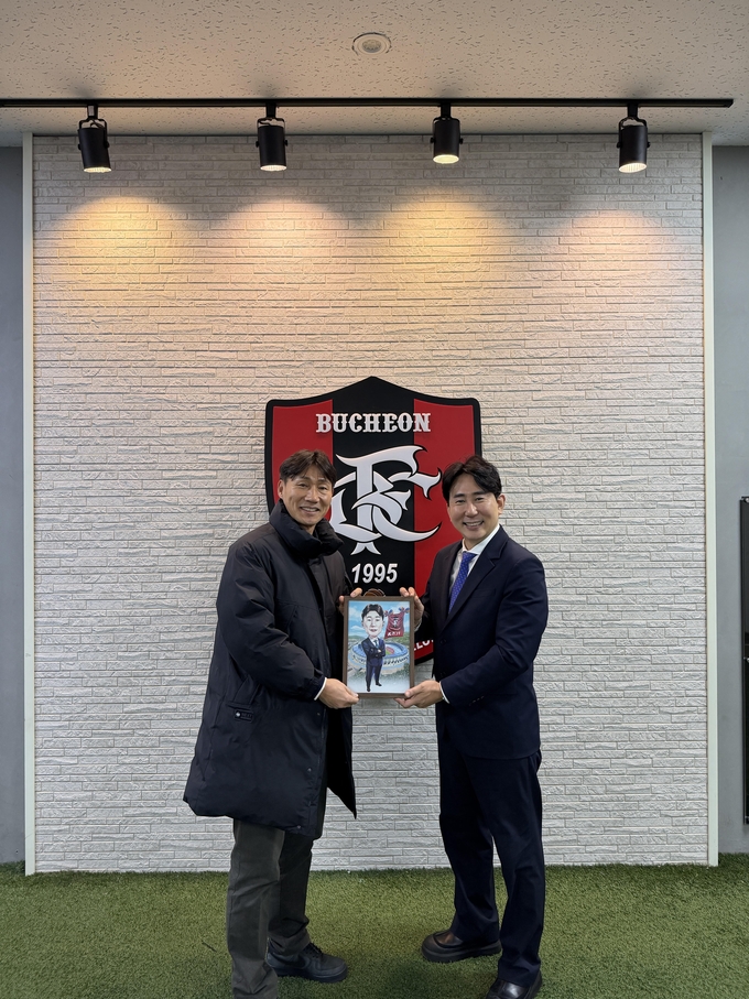한국만화영상진흥원이 부천FC1995의 K리그1 승격을 축하하며 이영민 감독에게 캐리커처 작품을 전달했다.