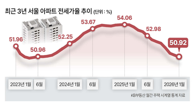 최근 수도권 전세가율이 50% 초반까지 떨어지면서 과거처럼 ‘전세를 끼고 집을 사는’ 방식은 사실상 차단되고 있다는 분석이다.