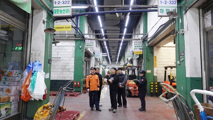 특히 새벽 경매 시간대 다중 인원이 밀집되는 도매시장의 특성과 냉동·전기설비가 상시 가동되는 점포 구역의 화재 위험 요인을 중점적으로 확인했다.