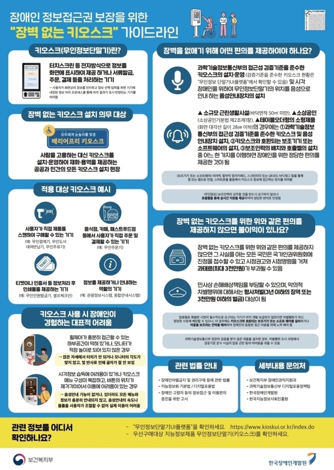반면 대형 점포와 프랜차이즈 매장에는 접근성 인증을 받은 키오스크 도입과 음성 안내 장치 구비를 중심으로 홍보와 계도를 진행할 방침이다.