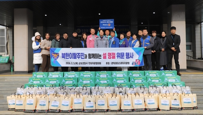 군포경찰서는 지난 5일 안보자문협의회 및 관악리더스로타리클럽과 공동으로 고향을 떠나 생활하고 있는 북한이탈주민들을 위해 생활용품 및 식료품 100세트를 전달했다고 밝혔다.