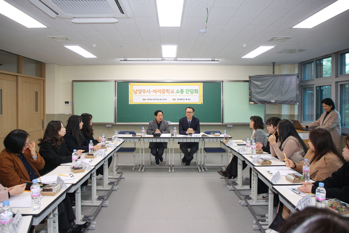남양주시는 6일 마석중학교에서 열린 ‘교육가족 정담회’에 참석해 학교 현안에 대한 의견을 나눴다고 밝혔다.
