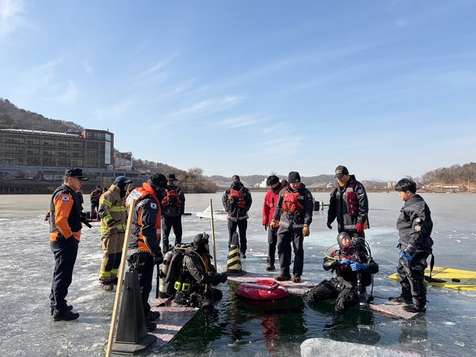 훈련은 동계수난구조 절차 및 안전교육을 시작으로 얼음물 잠수 적응 훈련과 수중탐색법 실습 위주로 이루어졌다. 특히 얼음 아래에서 발생하는 실제 사고 상황을 가정해 호흡기 및 잠수장비를 활용한 실전 중심 훈련을 실시하고, 해빙기 사고를 대비한 구조 기법을 집중 숙달하는 데 중점을 뒀다.