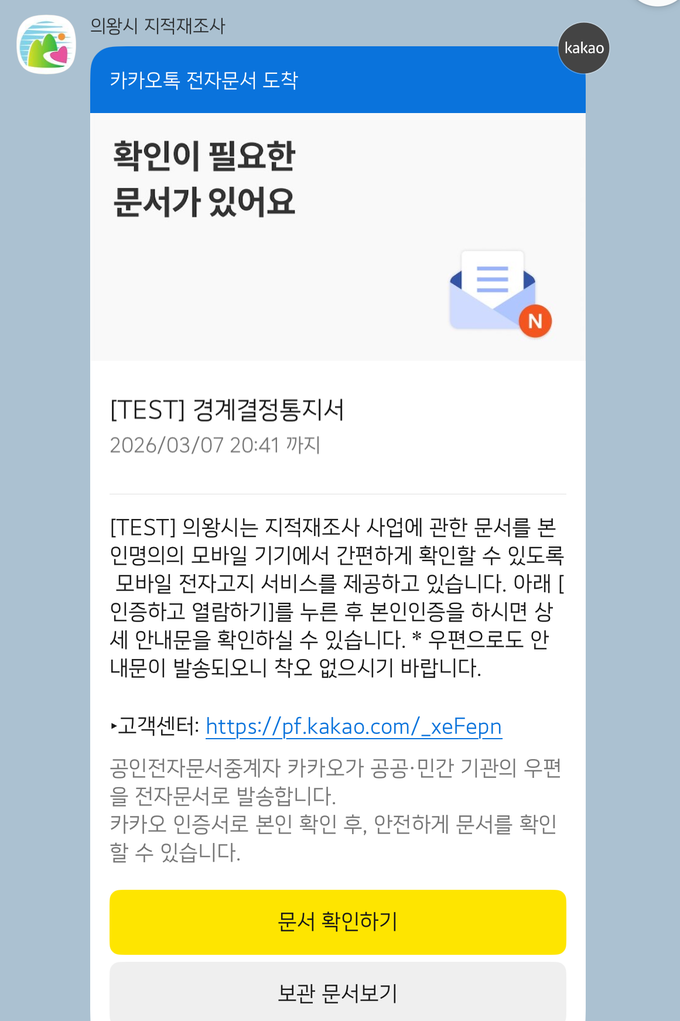 모바일 전자고지는 스마트폰을 통해 즉시 수신이 가능해 발송 시간이 획기적으로 단축되며, 담당 공무원이 수신 여부를 실시간으로 확인할 수 있어 행정의 투명성과 신속성도 한층 강화될 것으로 전망된다.