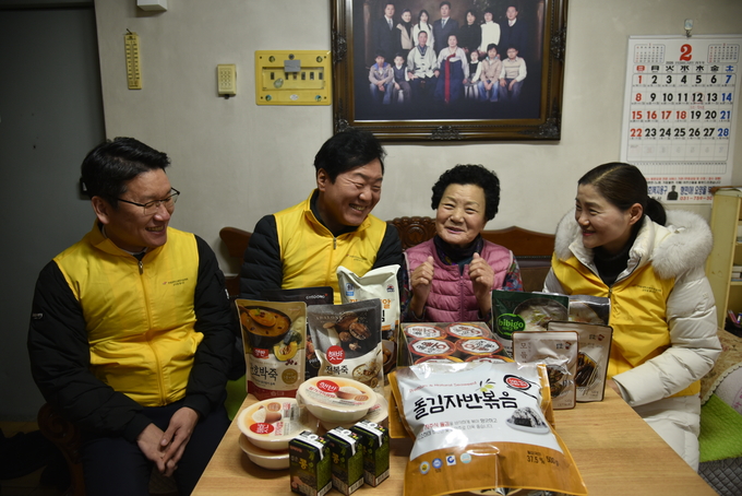‘행복꾸러미’는 도가니탕, 순살감자탕, 전복죽, 간장고추지 등 간편하게 식사할 수 있는 식료품들로 준비하여, 어르신들의 균형잡힌 영양섭취를 도모하기 위해 마련됐다.