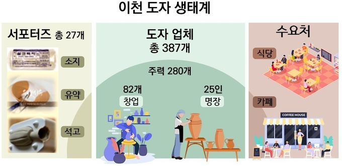 이천은 전국에서도 손꼽히는 도자 집적지다. 이를 뒷받침하 듯, 380여 개의 도자공방과 함께 소지·유약·석고·제형 등 도자 생산을 뒷받침하는 서포터즈 업체들이 분포해 있다. 본진과 지원군을 다 갖춘 셈이다. 여기에 외식업체와 생활소비 시장과도 맞닿아 있어 탄탄한 도자 기반을 갖추고 있다는 평가다.