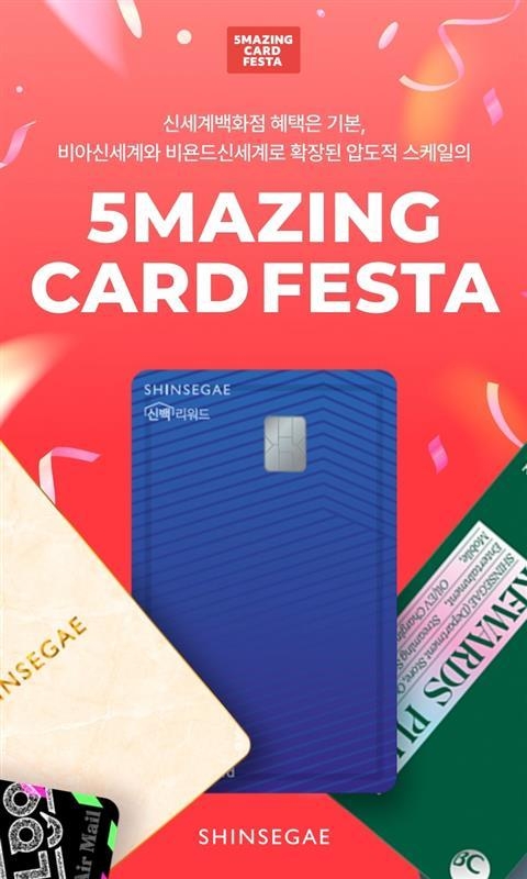 신세계백화점은 다음 달 2일까지 씨티카드, 삼성카드, 신한카드, 하나카드, BC바로카드 등 5개 제휴 카드사와 함께 ‘5메이징 카드 페스타’를 진행한다고 19일 밝혔다.