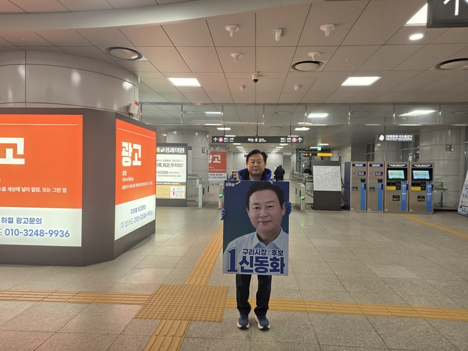 신동화 구리시장 예비후보가 23일 오전 지하철 8호선 장자호수공원역을 찾아 출근하는 시민들에게 인사를 하는 일정을 소화했다.