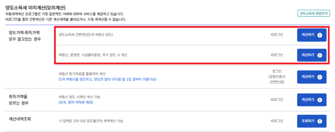 국세청 ‘양도소득세 모의계산’ 기능 제공
