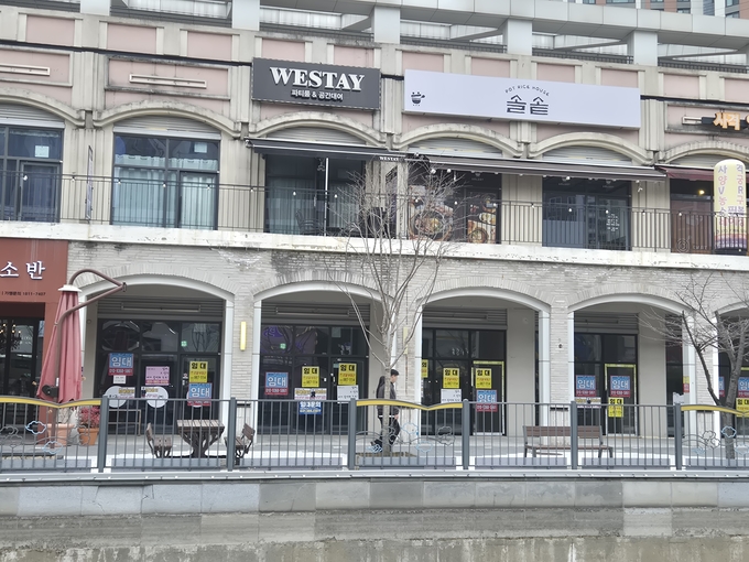 수변 산책로에는 간헐적으로 유모차를 미는 가족과 운동복 차림의 주민들이 오가곤 있지만, 바로옆 상가 내부로 들어서는 발걸음은 드물다.