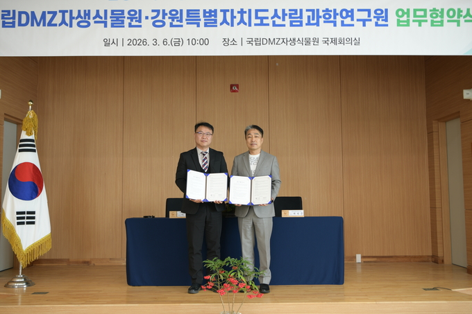 8일 국립수목원에 따르면 이번 협약은 DMZ 및 접경지역 산림에 분포하는 자생식물의 안정적인 보전 기반 강화와 기후변화에 대응한 식물자원 관리 역량을 높이기 위해 추진됐다.