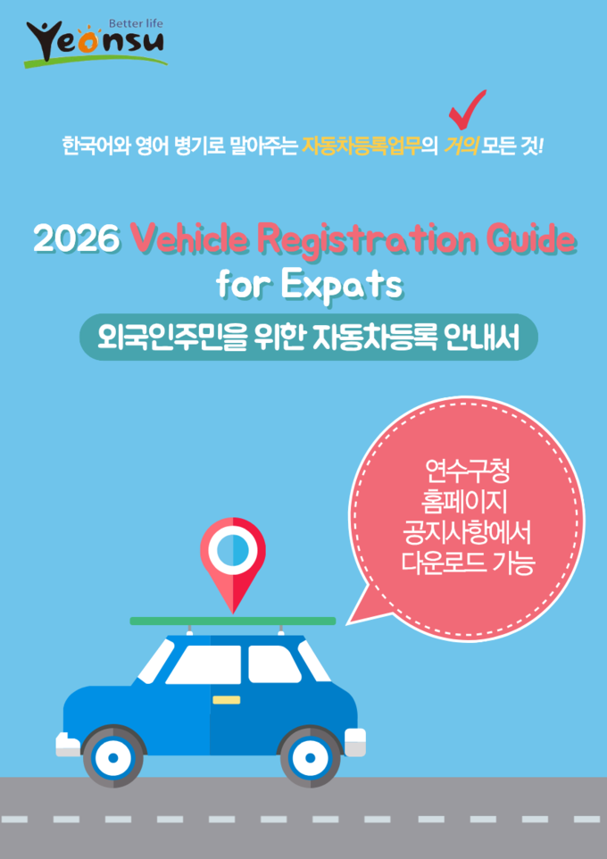 인천 연수구가 인천광역시 자치구 중 최초로 외국인 주민의 원활한 행정 절차 이행을 돕기 위한 ‘외국인 주민 자동차등록 안내서(2026 Vehicle Registration Guide for Expats)’를 제작해 배포에 나섰다고 9일 밝혔다.