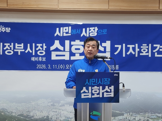 더불어민주당 심화섭 의정부시장 예비후보가 11일 의정부시청 기자실에서 기자회견을 열고 최근 지방선거 화두로 부각된 과천 경마장 유치에 대한 반대 의사를 밝혔다.