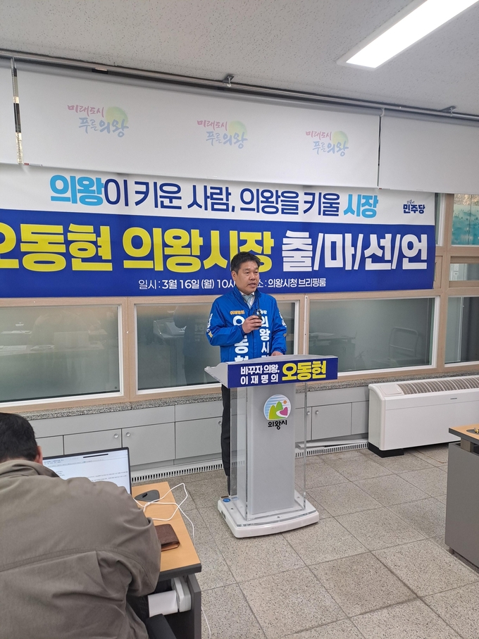더불어민주당 오동현 의왕시장 예비후보가 16일 오전, 의왕시청 브리핑룸에서 기자회견을 열고 “의왕의 지도를 바꾸겠다”며 공식 출마를 선언했다.