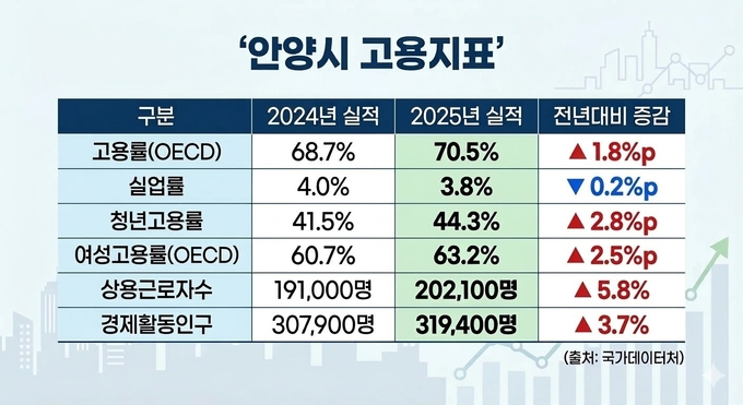 안양시, 고용지표 전반 '개선'..."고용률 상승·실업률 하락"