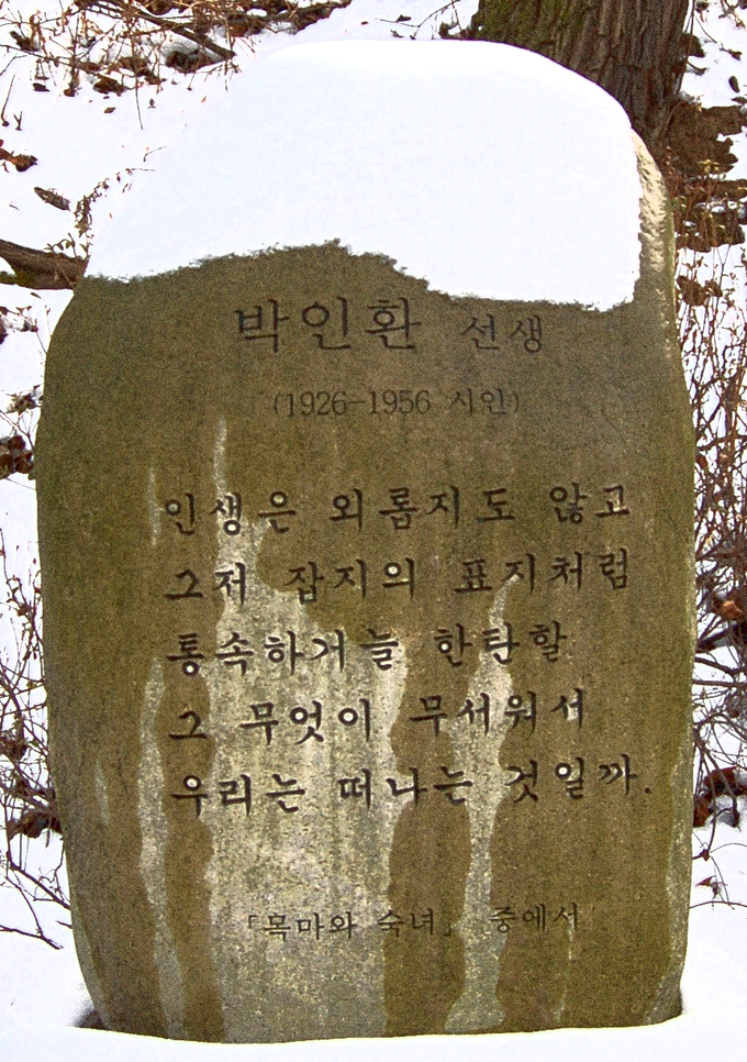 지금 인환은 가고 없지만, 그의 시, 그의 말은 우리 가슴에 남아 있다는 의미로 다가온다. 묘역에 잘 어울리는 비문이 아닐까 싶다.
