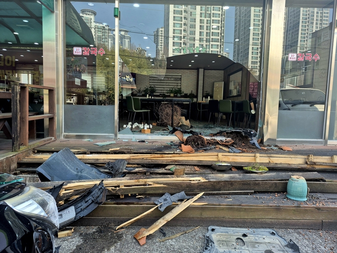 이로인해 대형 유리창이 완전히 박살 났으며, 식당 내부 테이블과 의자 등 집기류가 처참하게 파손되는 등 상당한 재산 피해가 발생했다.