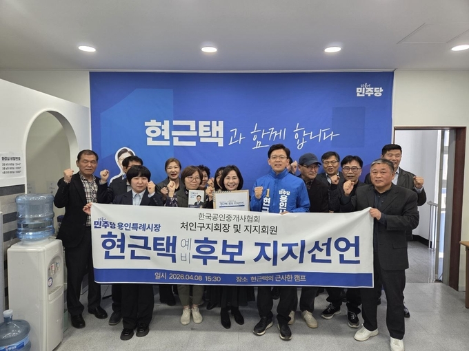 더불어민주당 현근택 용인시장 예비후보는 지난 8일 한국공인중개사협회 처인구지회 소속 지지자들이 자신에 대한 지지를 공식 선언했다고 9일 밝혔다.