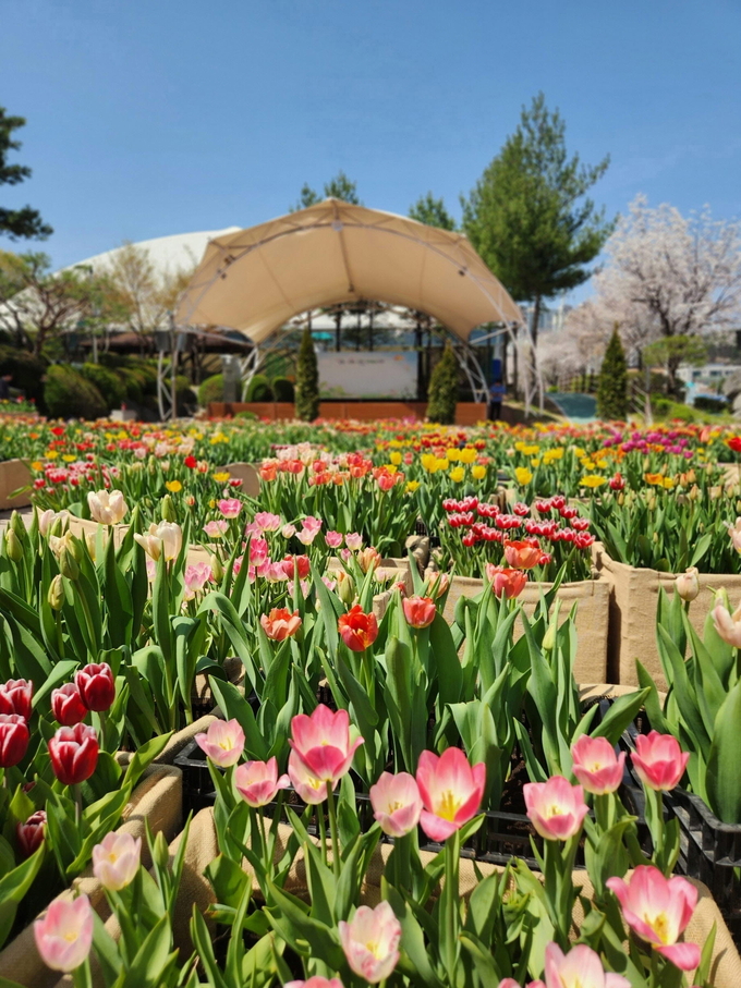특히 벚꽃 개화 시기와 어우러지도록 화단을 배치해 튤립의 선명한 색감과 벚꽃의 부드러운 분위기가 조화를 이루는 화사한 봄 경관을 연출했다.