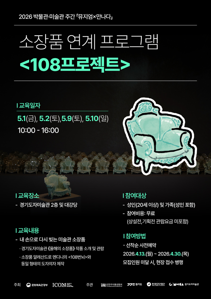 참여자들은 회차별로 소장품과 동일한 형태의 도자 의자 작품을 공동 제작하며, 108명이 함께 완성하는 하나의 프로젝트로 연결된다.