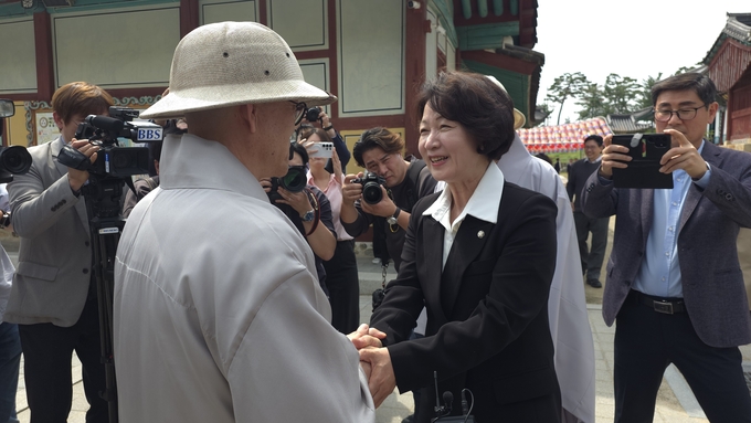 추 후보는 이날 첫 일정으로 화성 용주사를 방문해 주지 성효스님과 차담을 나눴다. 용주사는 정조대왕이 부친 사도세자의 넋을 기리기 위해 세운 사찰로, 추 후보에게는 법무부 장관 시절 등 정치적 고비마다 찾았던 ‘정신적 지주’와 같은 곳이다.