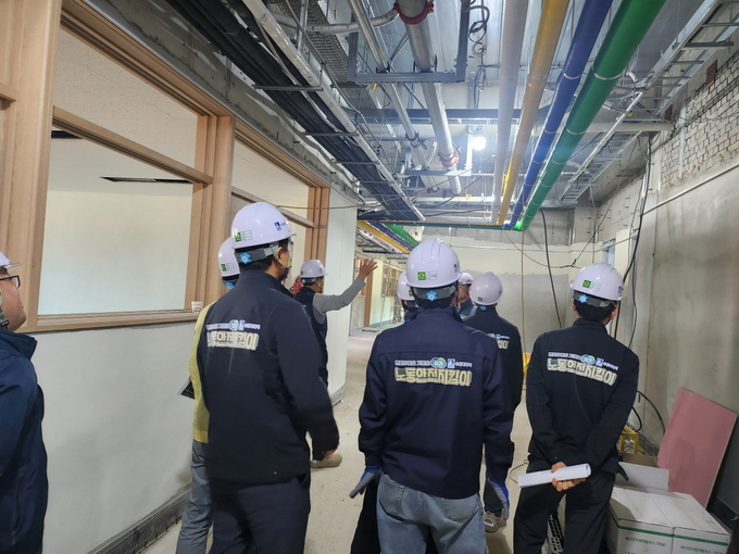 참석자들은 ▲떨어짐 ▲끼임 ▲부딪힘 3대 사고를 중심으로 공사 현장을 세심히 살피고, 방호조치 상태와 건축자재 정리정돈 상태 및 작업자들의 안전수칙 준수 여부를 확인했다.