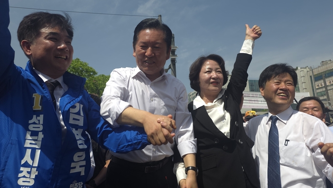 6·3 지방선거 더불어민주당 추미애 경기도지사 후보가 19일 정청래 당대표, 김병욱 성남시장 후보 등과 함께 성남 모란시장에 방문해 당원 집결과 민심 공략에 나섰다.