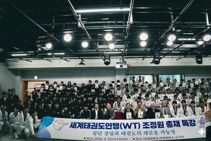 세계태권도연맹(WT) 조정원 총재가 대경대학교 유진선 이사장 초청으로 한류캠퍼스에서 태권도과 학생 200여 명을 대상으로 22일 ‘세계태권도의 새로운 가능성’이라는 주제로 특강을 했다.