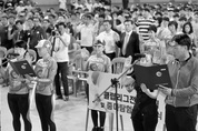 2일 선학체육관에서 열린 ‘2017 인천사랑 클럽리그전 개회식 및 줌마탐험대 발대식’에서 선수단 및 줌마탐험대 대표들이 선서를 하고 있다. /인천시 제공
