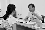 유정복 인천시장이 29일 희망릴레이 7일간의여정 민생방문 투어 두번째를 맞아 여성가족재단을 찾아가 여성일자리 관련해 구직자 취업 상담을 하고 있다. /인천시 제공
